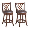 360° Swivel Chairs Bar Stools with Rubber Wood Frame PU Leather Cushioned Seat and Footrests