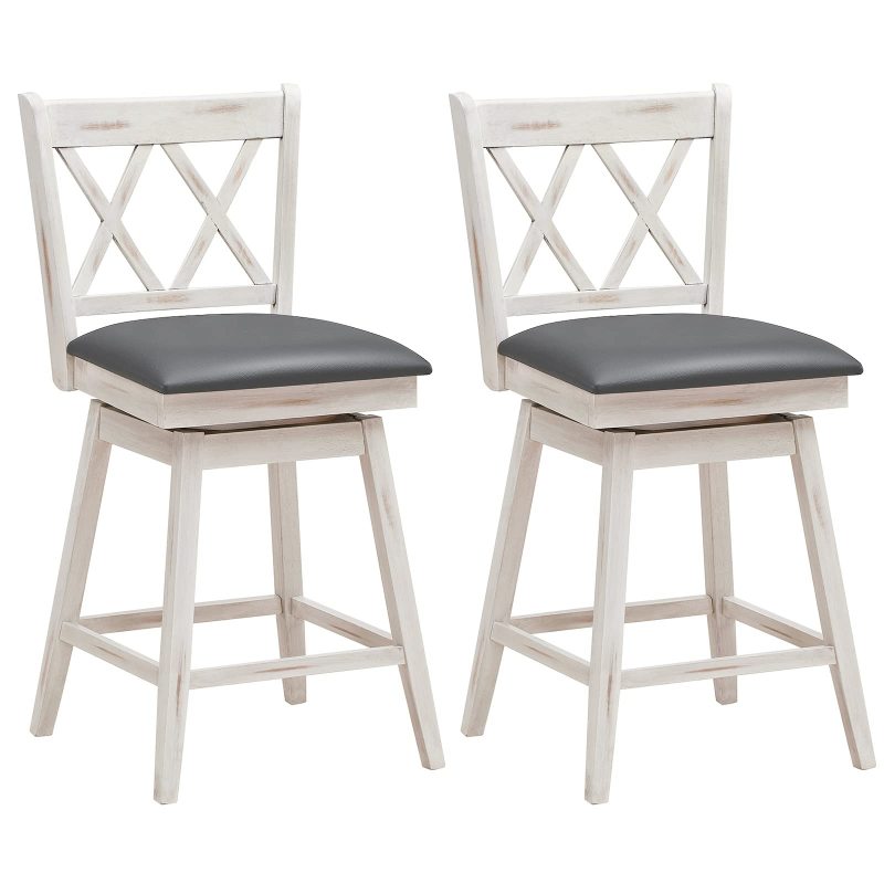 360 ° Swivel Counter Height 25 inch Bar Stool with Foot Rest Upholstered Cushion & Ergonomic Backrest