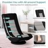 Immerse yourself in unparalleled comfort and convenience with our premium swivel floor chair. Boasting 4 adjustable positions ranging from 90 to 130 degrees, this chair is designed to cater to your various activities, whether it's working, watching TV, or enjoying a peaceful nap. The sturdy 360° swivel base allows you to effortlessly change directions without leaving your seat, offering seamless mobility. Filled with upgraded foam and upholstered in breathable mesh fabric, this chair ensures optimal comfort and effective heat dissipation for a relaxing experience. With a heavy-duty metal base supporting up to 310 lbs/140 kg, you can trust in the durability and stability of this chair. The removable base cover makes cleaning a breeze, ensuring hassle-free maintenance. What's more, the softly padded sponge provides all-round support, relieving stress from sedentary position together with the neck pillow. The versatile design makes it suitable for a range of settings, as you can easily enter reading mode in the study or gaming mode in the living room!