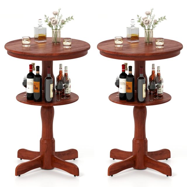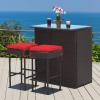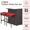 3PCS Patio Wicker Bar Table Set with Tempered Glass Top and Storage Shelf