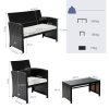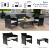 Our four-piece rattan sets brighten up your living space while providing a comfortable seat. Crafted with premium rattan, each piece creates a cool and textured appearance, which perfectly matches your outdoor or indoor space. In addition, rattan features the advantage of weather resistance to creating excellent user experience. The tempered glass coffee table comes with four suckers, which provide superior durability while bringing convenience. The high resilience foam seat adds softness dedicated to supporting and relaxing your hips. This outdoor furniture set includes 1 loveseat, 2 single chairs and 1 coffee table that can be freely combined based on your favorite.