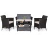 4 PCS Patio Rattan Furniture Set with Coffee Table & Shelf