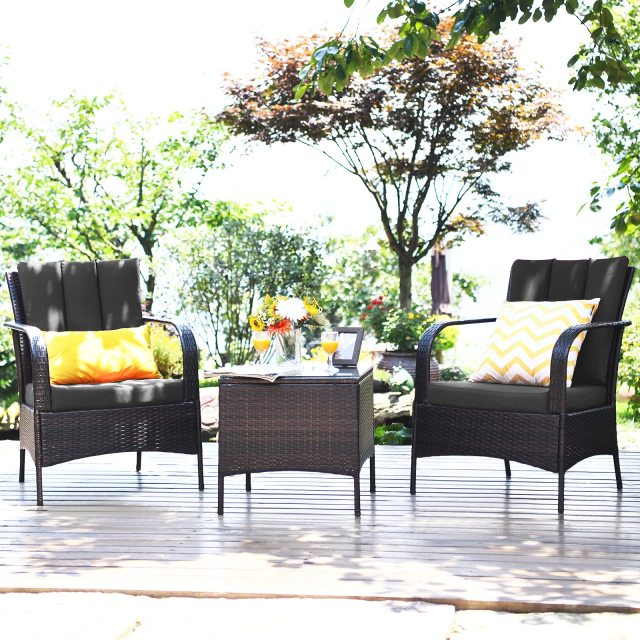 Material: PE Rattan, Metal, Tempered Glass, Polyester, Foam