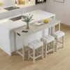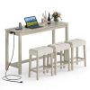 Transform your small space with this versatile 4-piece breakfast nook set! Effortlessly tuck the 3 faux linen upholstered stools beneath the sturdy counter-height table to free up precious room. Engineered for durability, it boasts a robust frame, reinforced bars, and anti-slip feet, supporting up to 270 lbs on the table and 415 lbs per stool. Elevate your kitchen's organization with a sleek built-in power strip. No more tangled cords, just easy access to AC outlets and USB ports! Each seat pampers you with ultra-thick, tufted cushions and footrests, perfect for cozy mornings or lively get-togethers. Finished in a rustic, farmhouse-inspired wood grain, this set adds charm while resisting daily wear. Don't miss out on the perfect blend of comfort, convenience, and timeless style. Upgrade your dining space today!