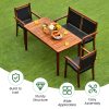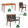 This 4-piece patio dining set will be the perfect solution for small places! If you do not need to eat outdoors, just push the loveseat and 2 armchairs under the table in order to save your space. Additionally, the compact dining set provides spacious tabletop and 4 seats for gathering around and enjoying delicious dinner together. In the summer, you can insert an umbrella in the 1.9" umbrella hole. What's more, this outdoor dining set is made of solid acacia wood, all-weather PE rattan and anti-rust galvanized steel to ensure its durability and stability.