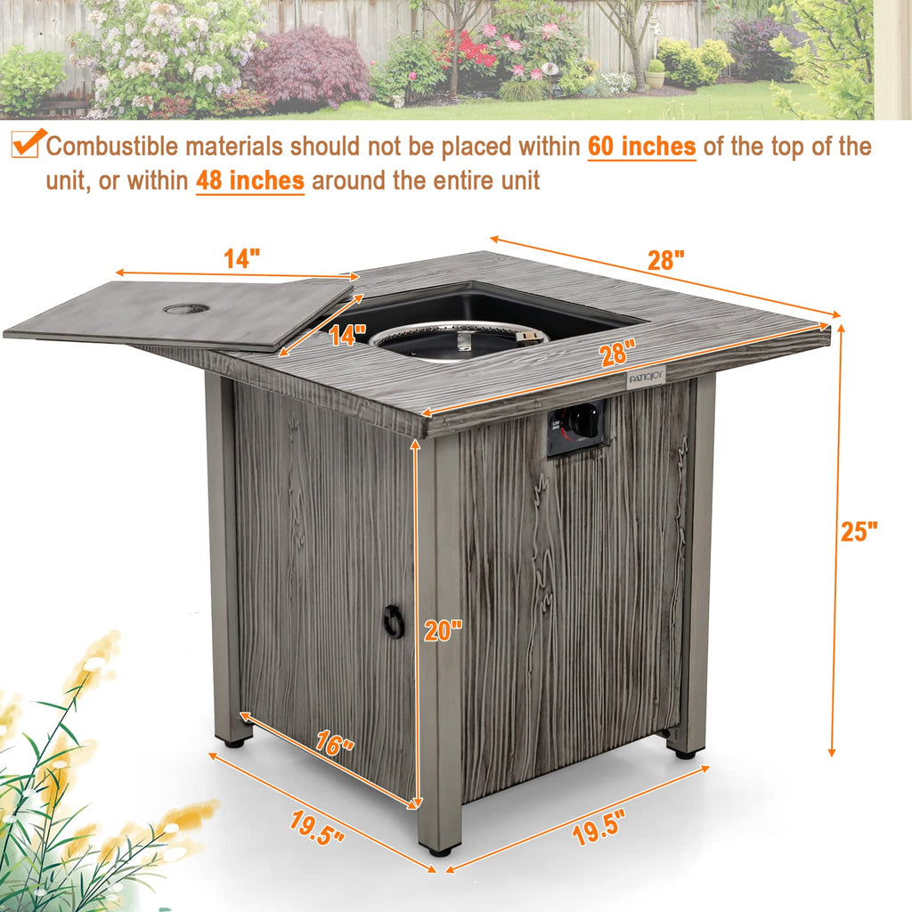 40,000 BTU Outdoor Propane Gas Fire Table with Wood Like Tabletop