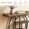 Featuring a sleek top paired with a geometric metal frame, this hallway table offers both elegance and durability. The 4-tier shelving design provides generous space to display and organize daily essentials. For reliable construction, the foyer table is equipped with anti-topping devices to ensure secure placement. Together with adjustable foot pads, higher stability is ensured. Besides, this versatile piece is perfect for placement behind sofas, in entryways, or hallways, effortlessly elevating any room.