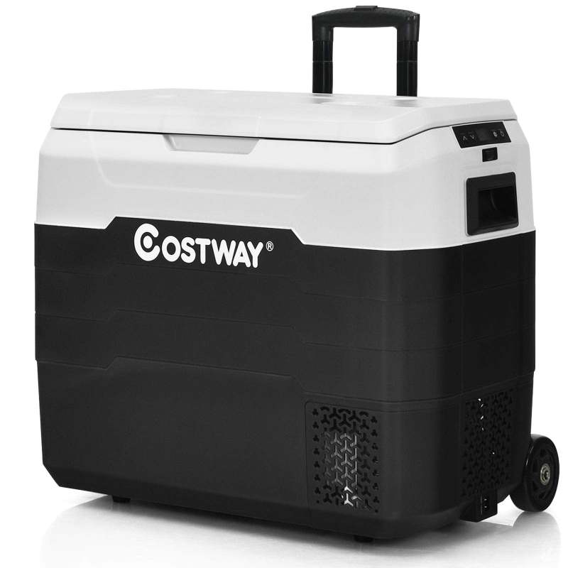 With an upgraded compressor, this car fridge and freezer can achieve rapid cooling from -4°F to 50°F, allowing you to drink cold cola in the hot summer. Made of premium PP materials, this fridge is non-toxic and safe to use. With a 42-quart large capacity, this fridge can keep most kinds of things cool. Moreover, equipped with 2 wheels and a telescopic handle, this portable fridge can be used in various situations, such as BBQ parties, picnic, fishing, camping or self-drive travelling. The car freezer is designed with 45dB low noise which gives you peace while on the long drive. And this fridge is equipped with 4 cup holders, LED light, touch control panel, drain plug and battery protection. All of these thoughtful details make it a perfect fridge.