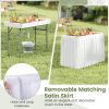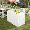 Fashioned from resilient HDPE and robust metal legs, this table provides stability in diverse conditions. The central drainage outlet and drain hose streamline water draining. The accompanying skirt enhances visual appeal and offers additional storage. Whether serving as a beverage station at a barbecue or a cold food bar at an outdoor wedding, this table meets all requirements. Elevate your event with this collapsible ice bucket table, ensuring your assortment remains impeccably chilled.