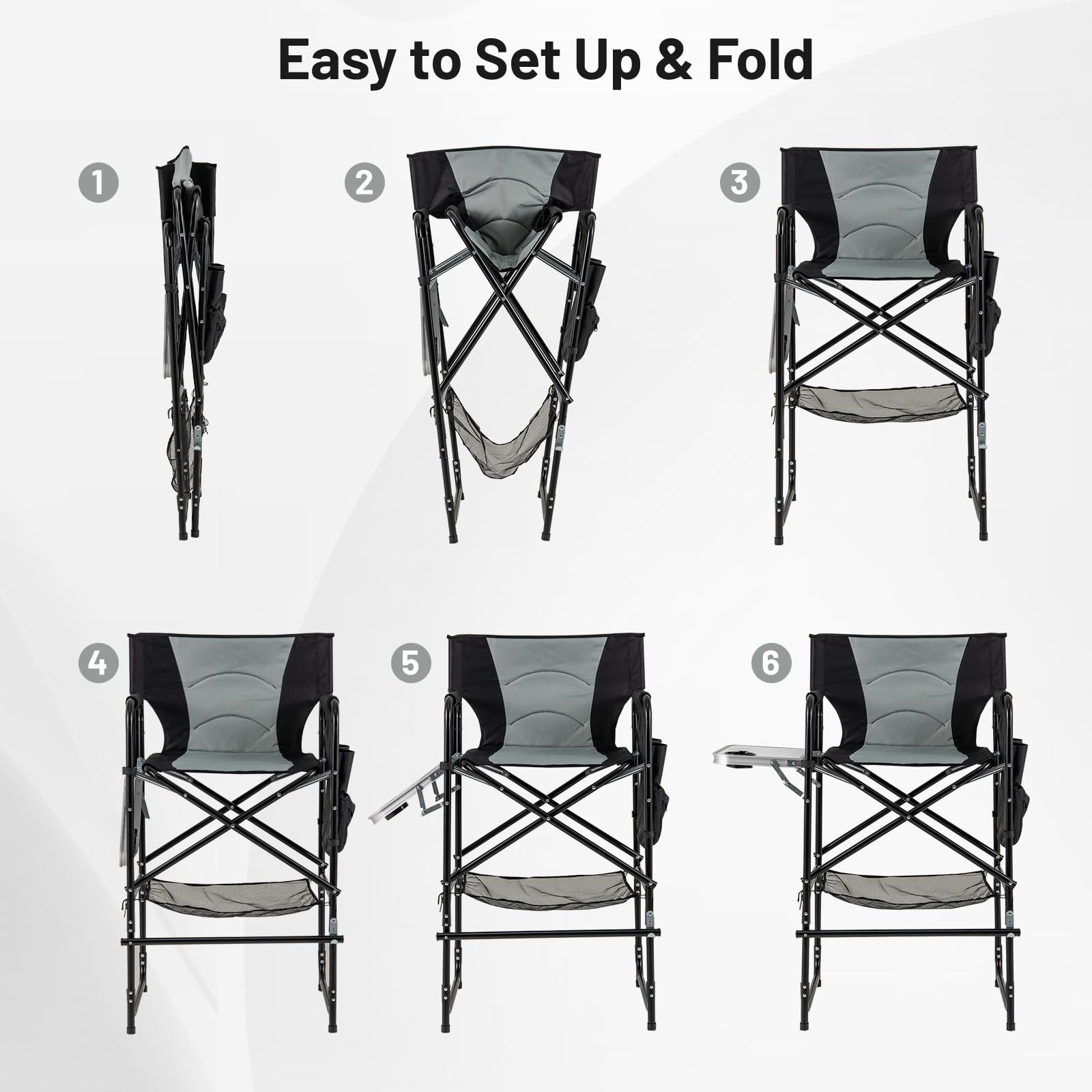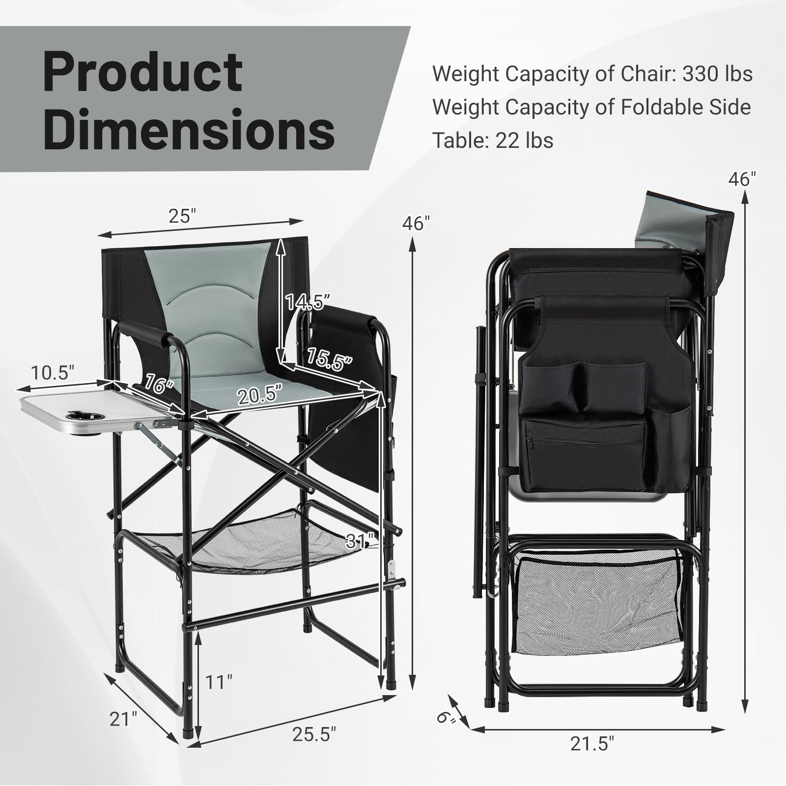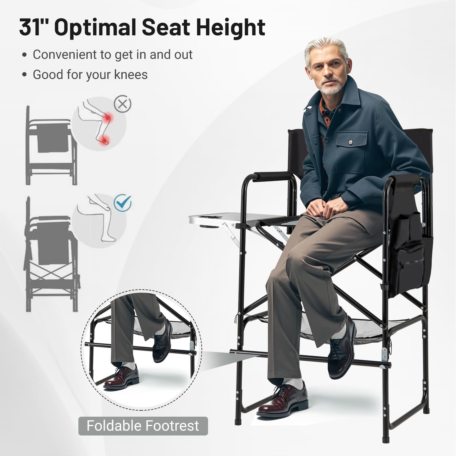 46" Tall Directors Chair Folding Makeup Artist Chair with Foldable Side Table & Footrest