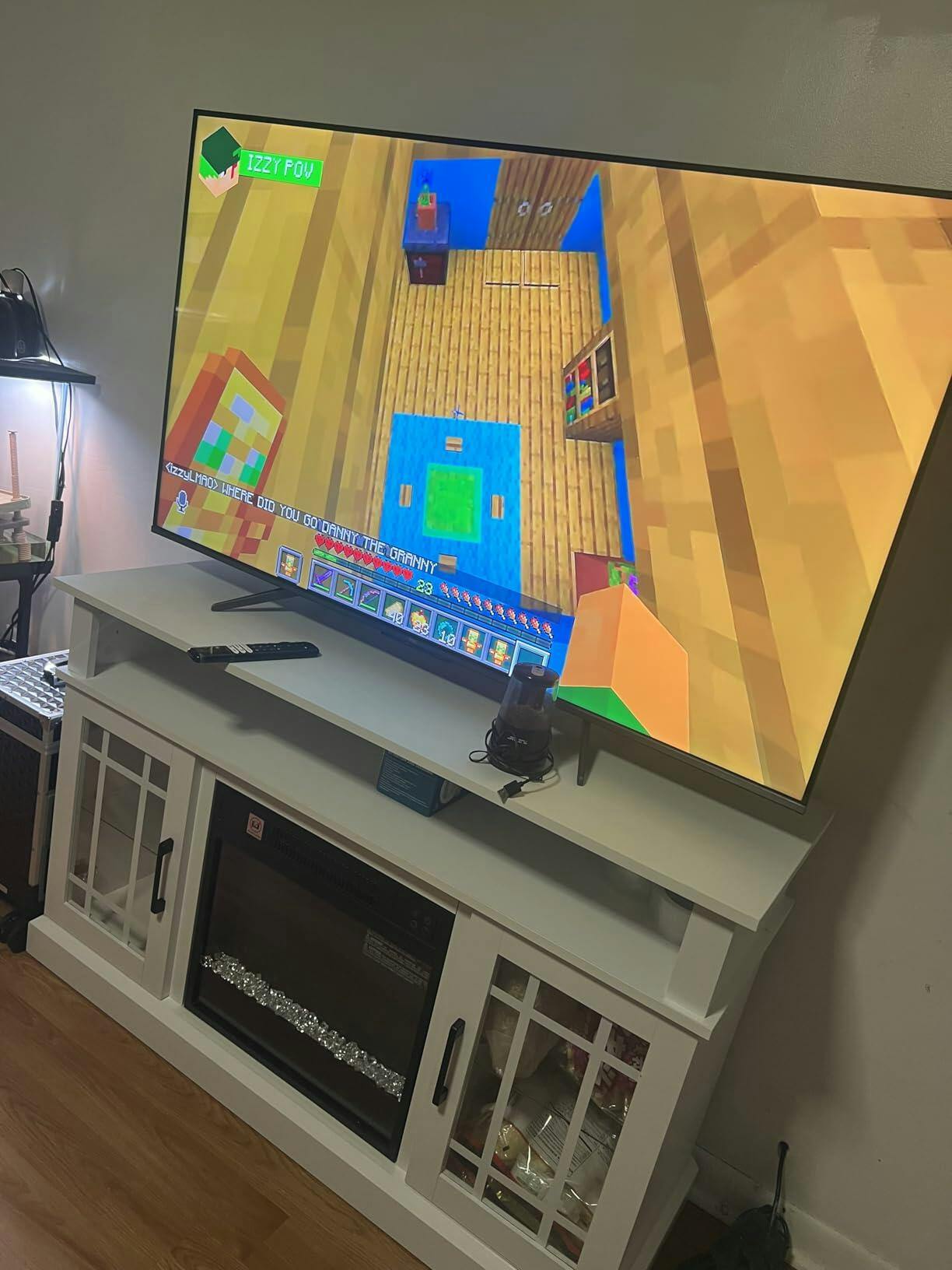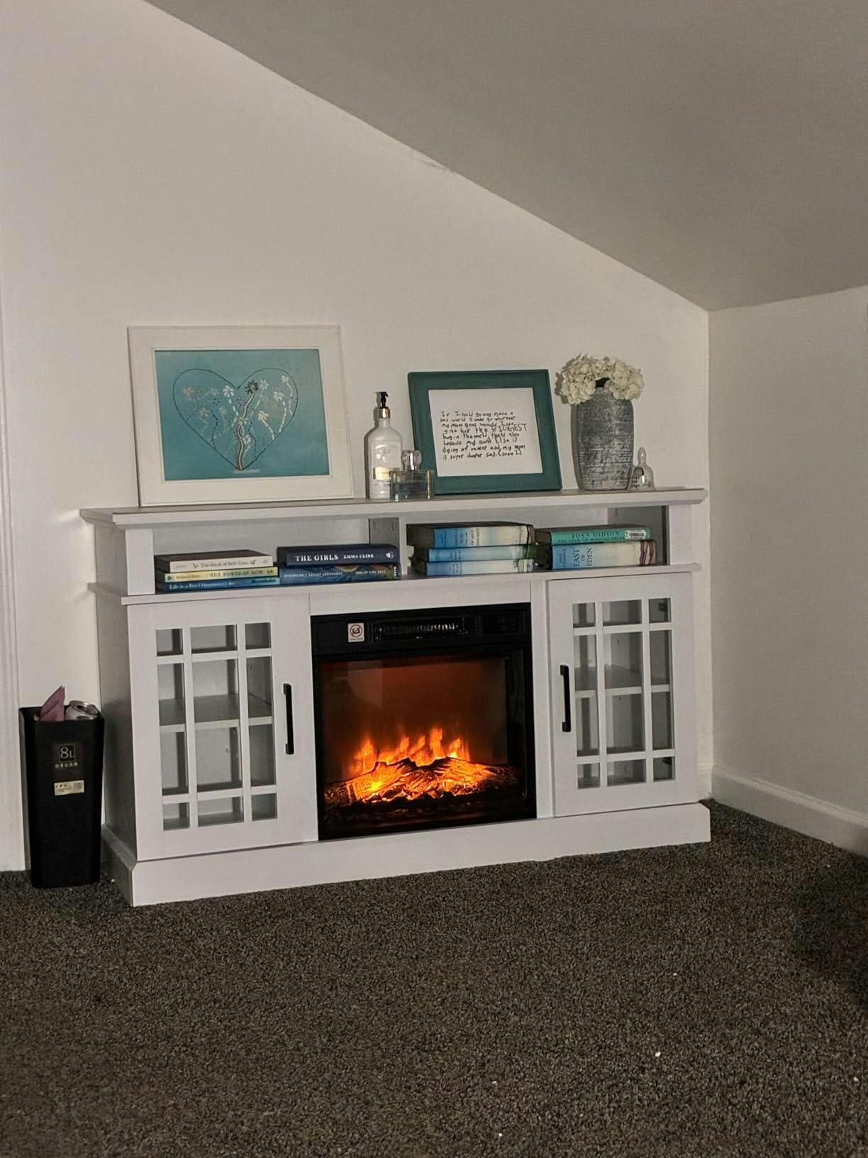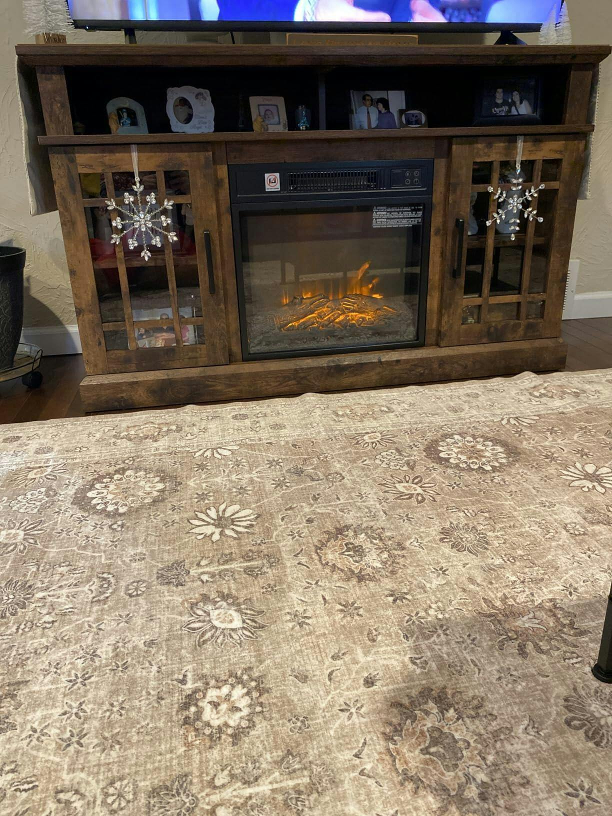 Love this TV stand!<3 The LED lights look modern and cozy. The electric fireplace keeps our living room warm during cold winters, which is perfect for our kids who love watching TV there. Very family-friendly, practical, and a great addition to our homeXD our TV is 55inch perfect fit.