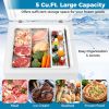 With a compact design, this chest freezer fits seamlessly into various spaces such as home kitchens, garages, or apartments. The 5 cube feet large capacity and a 7-gear adjustable temperature control offer flexible storage solutions for a wide range of frozen foods, keeping items at temperatures from -4℉ to 10.4℉. The included removable storage basket helps organize your favorite foods, making it simple to access. The top stay-open door allows hands-free loading and unloading, while the robust metal hinges add to the durability. Thanks to the high efficiency compressor, this freezer operates with low energy consumption. In addition, it runs quietly that ensures minimal disruption.