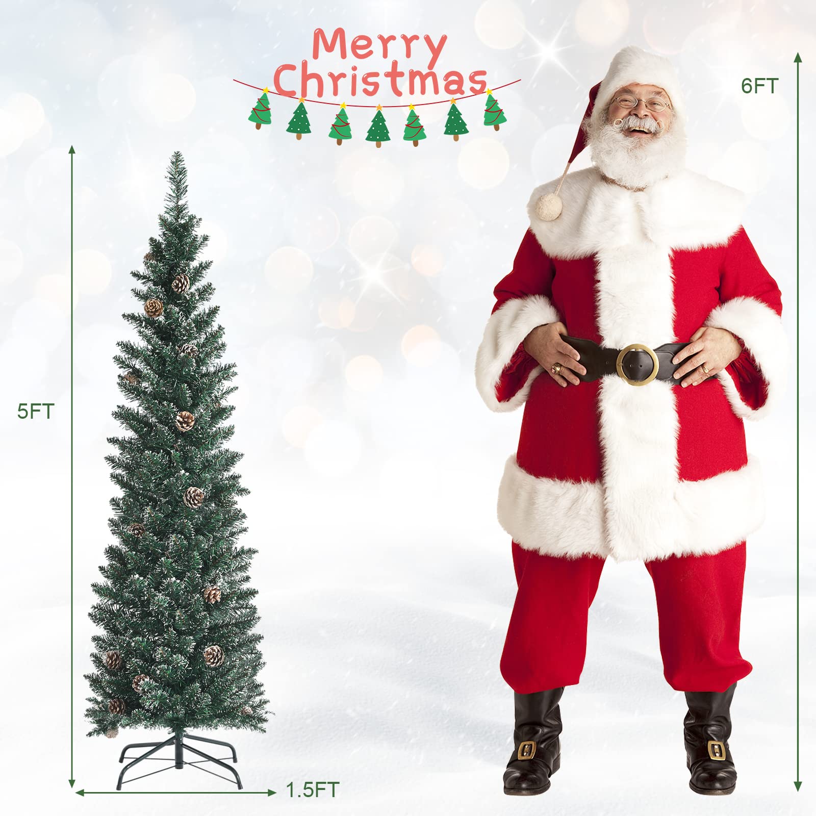 5 Ft Unlit Pencil Christmas Tree w/ 214 Snowy PVC Branch Tips