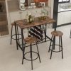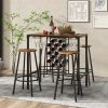 Whether enjoying dinner with family or a peaceful night with a glass of wine, this 5-piece dining table set is a must-have for your home. Crafted from stable metal frame and durable boards, this breakfast table set provides reliable stability for long term use. This bar table set comes with 1 rectangular table and 4 stools, that can fit 4 people comfortably. The tabletop is large enough to keep your delicious dishes in order. And the wine rack and the glasses holder can keep your wine collection and glasses organized. All of the stools are designed with footrests which are sturdier and humanized. This industrial bar table set will be a great addition to the dining room, kitchen, bar, and more.