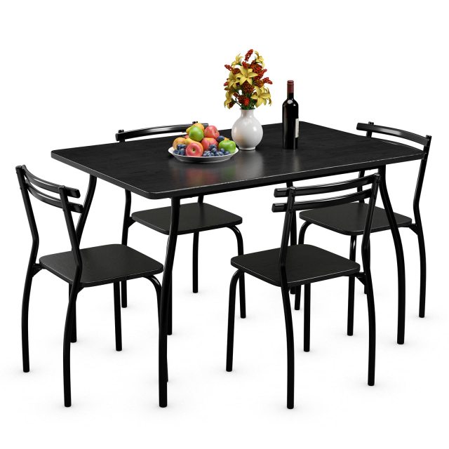 Our kitchen table set includes a table and four chairs. The design is simple without much decoration. It provides you a simple living environment and a comfortable and free atmosphere. It can be placed not only in the kitchen, but also in the dining room. If the weather permits, you can also move it to the yard to spend your leisure time. You don't have to worry about quality. It's made of high-quality tempered glass and metal frame that ensures long term use. And rounded corners designed to protect your children from collision.