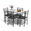 5 Piece Home Kitchen Dining Set Tempered Glass Top 4 Chairs Modern Design