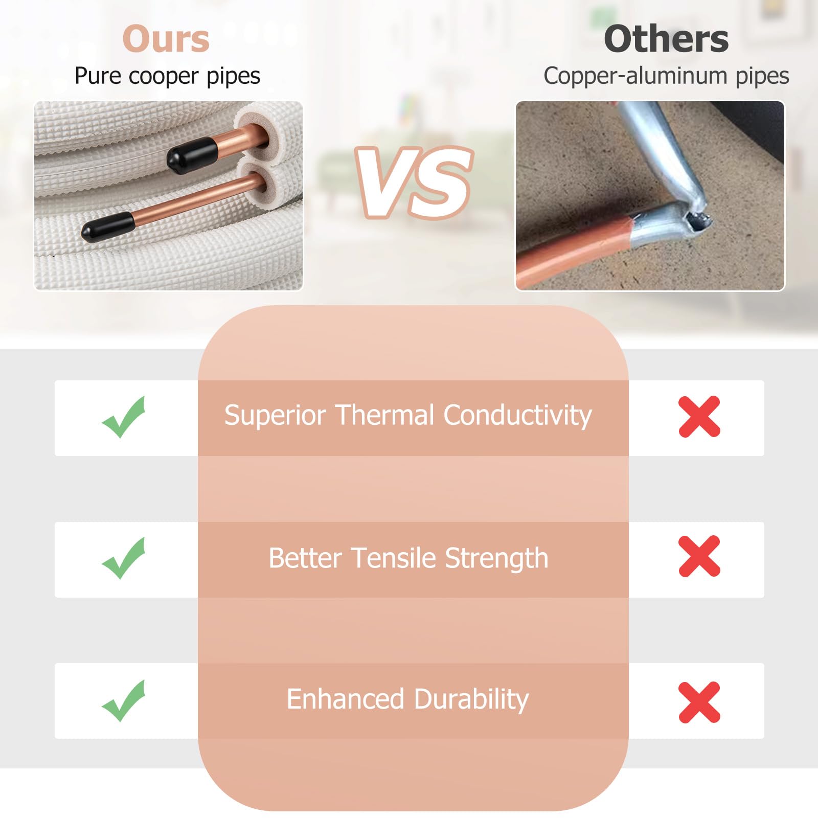 1/4”&3/8” O.D. pure copper pipes for superior thermal conductivity