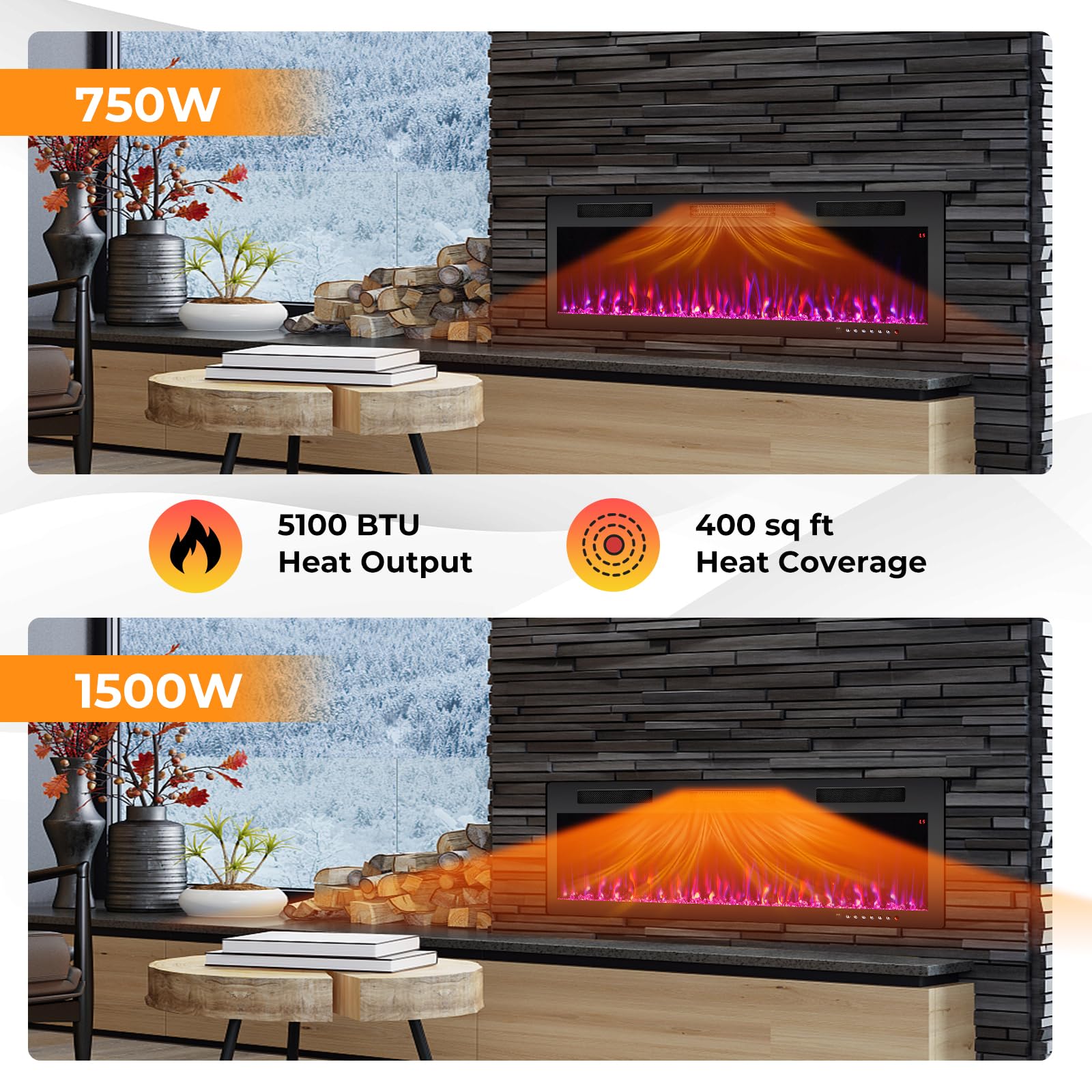 50 Inch Electric Fireplace Recessed and Wall Mounted, 750W/1500W Electric Fireplace Heater with Remote