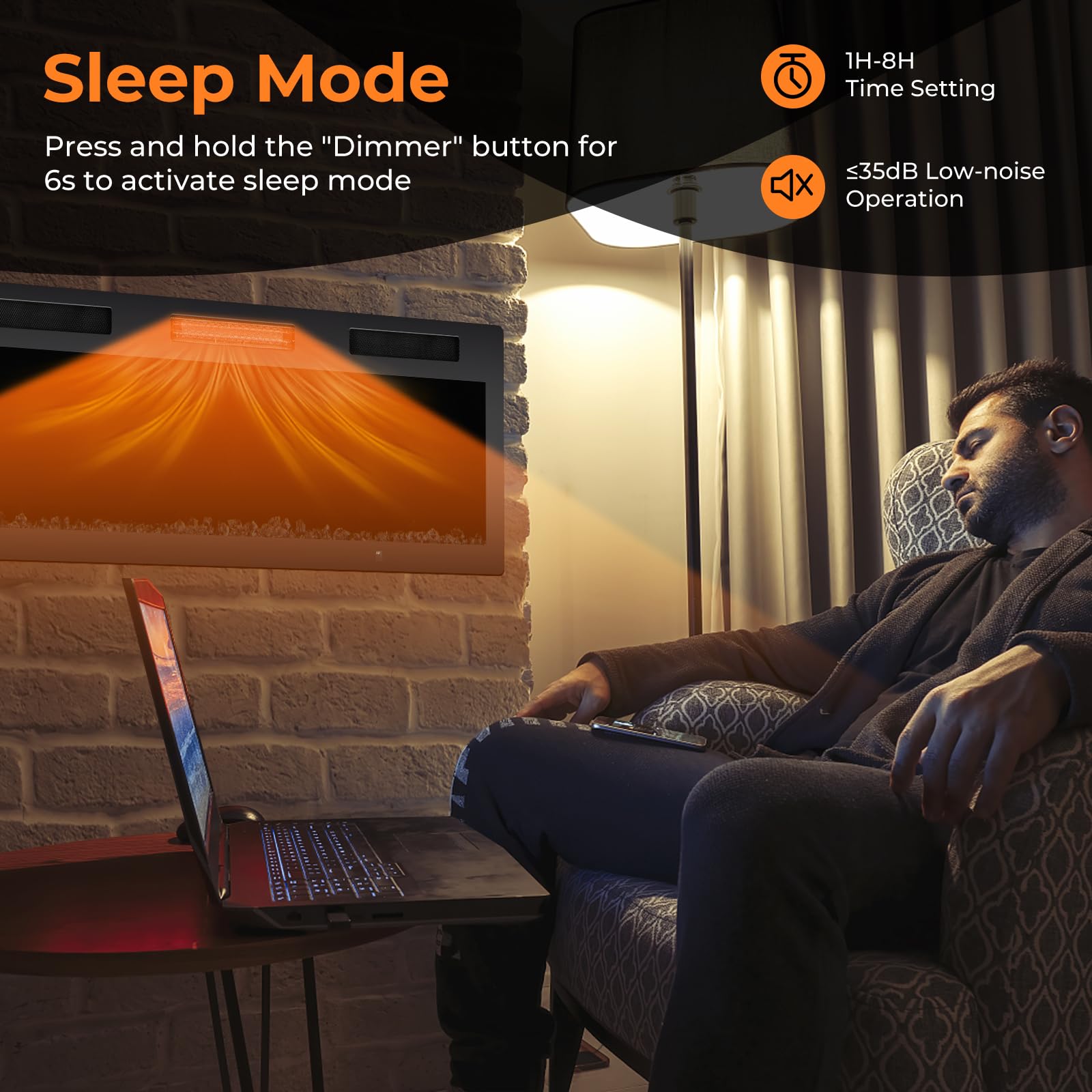 - User-friendly Sleep Mode: Vary from others, this fireplace insert heater comes with sleep mode, which means all the lights will automatically turn off. All you need to do is press and hold the “Dimmer” button for 6s to activate sleep mode. And 1H-8H timer and ≤35dB low-noise operation create a better sleep environment.