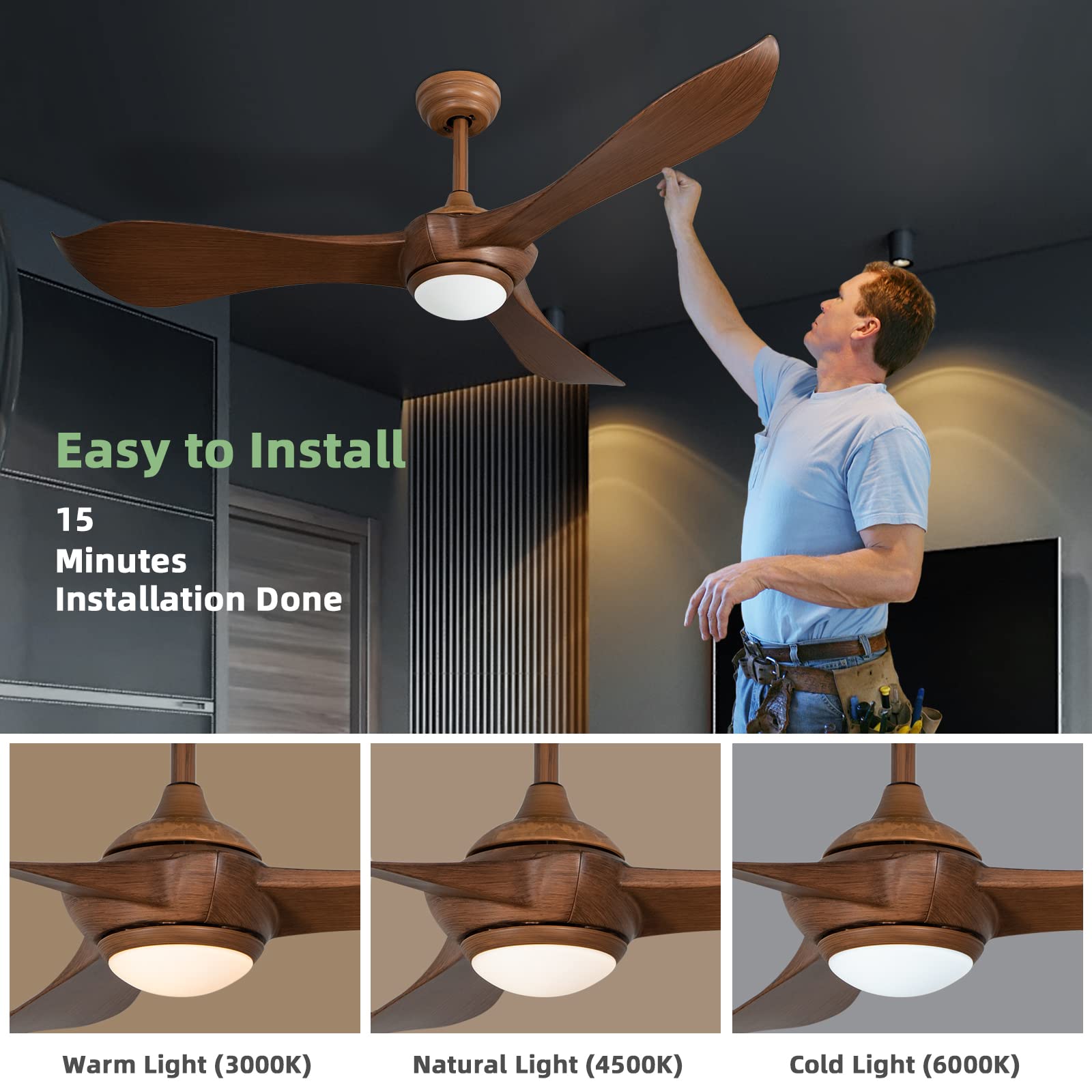 - 【3-in-1 Ceiling Fan with Remote】The 52-inch modern ceiling fan combines three functions----fan, light and decor, making your life simpler and more elegant. With a remote control, you can easily turn on/off the fan or light, adjust fan speed, set timer and switch color temperature without standing up.