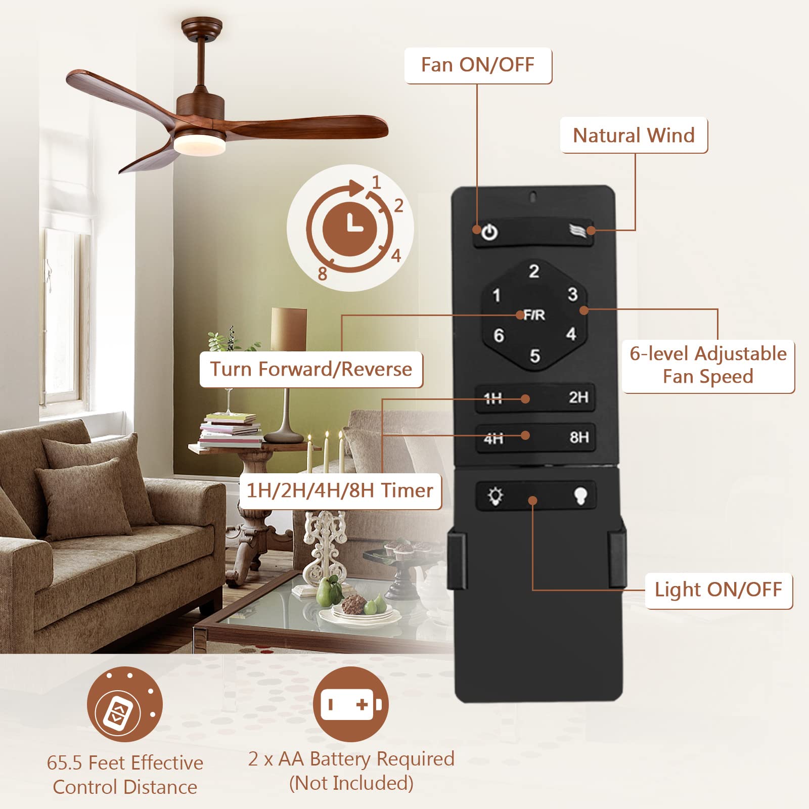 - 【All-in-one Remote Control】The remote control enables all functions of this reversible ceiling fan. It is worth mentioning the 8H timing function that is great for a good night’s sleep. And the 65.5 feet effective control distance allows you to curl up on the sofa for easy operation. The wall dock is included to store the remote control easily. Please note that 2 x AA batteries are required (not included).
