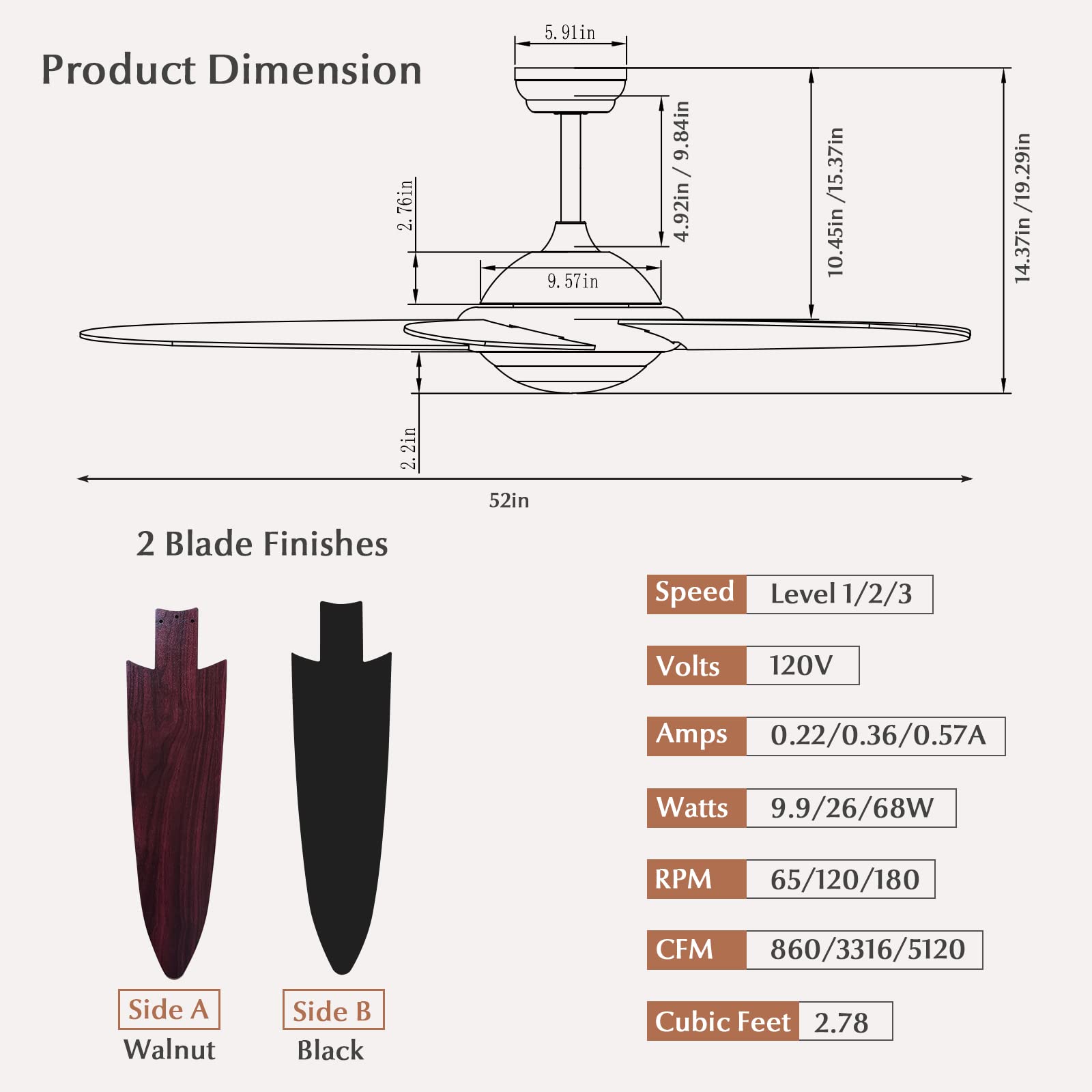 - [High Quality Material]: Made of sturdy & anti-rust metal material, this ceiling fan with LED light ensures long-term use. In addition, the elegant wood-like blades with dual finish (SL: brown/rustic grey; WH: natural/white; DK: walnut/black) can fit well with any home decors and add style to your room.