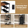 Update your work or study space with this industrial computer desk. Large desktop easily accommodates your computer monitor, keyboard, desk accessories. With 2-tier open shelf, you can neatly store books, baskets, decorations, etc. To meet your desired storage needs, the middle shelf can be removed to leave more room for a host computer. Made of sturdy steel frame and durable engineered board, the computer desk will serve you for a long time. Even better, the simple 2-color style blends well with any living space, making it a functional and unique addition.