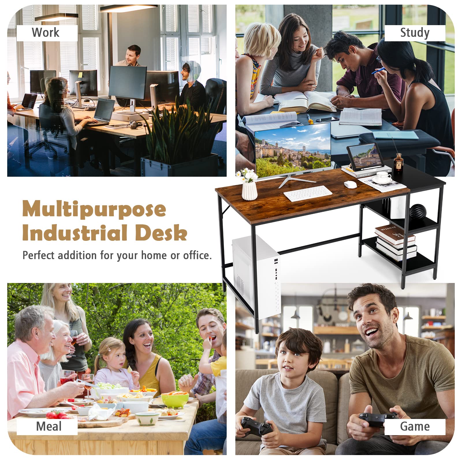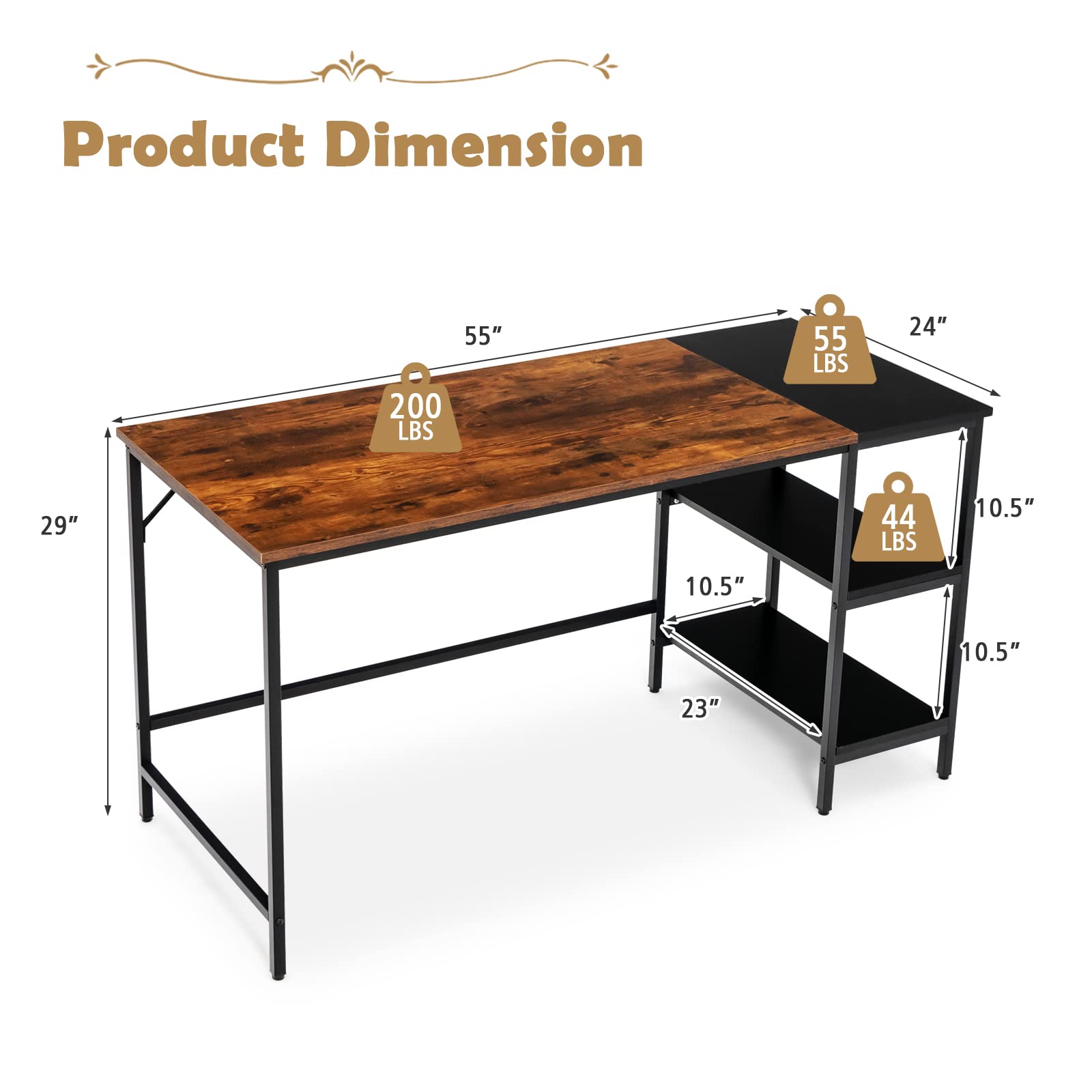 55 Inch Modern Industrial Style Study Writing Desk with 2 Storage Shelves