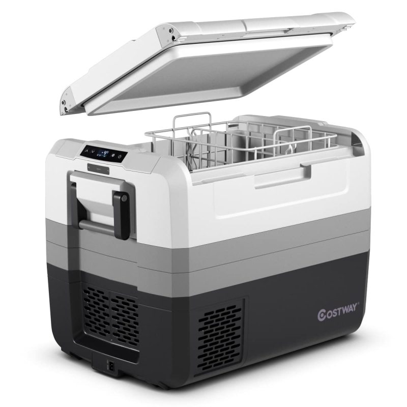 58-Quart Compressor Travel Refrigerator with Two-way Open Door for Outdoor Use
