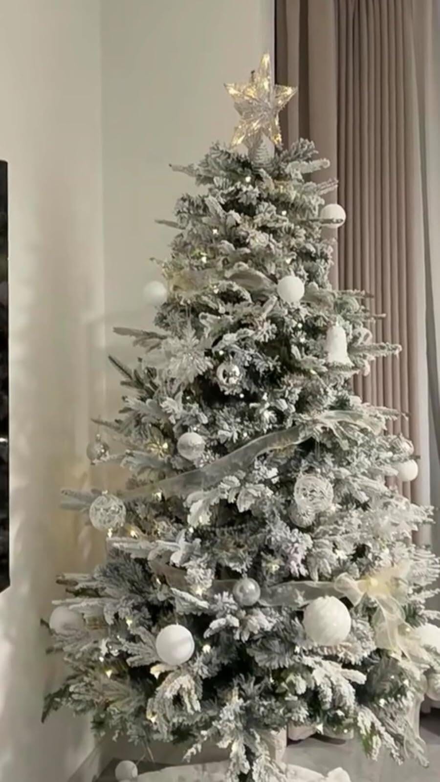 600 flocked branch tips are decorated with 250 warm white LED lights. It comes with a UL588 certification to ensure using safety. In the nighttime, the 6ft Christmas tree will emit a charming light to create a romantic holiday vibe. Also, branch tips are made of premium PVC with fire and fade resistance. Moreover, its 3-section design highly simplifies assembly and storage. Hinged structure saves you a lot of time during setup. Supported by a folding metal stand, the artificial Christmas tree is ideal for home, school, carnival and more places. May you feel our blessings brought by the delicate Christmas tree!