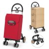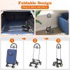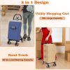 This folding grocery cart will be your convenient & practical shopping companion!With 68L large capacity and 66 lbs load bearing capacity, this utility shopping cart can carry many things at once, which saves time and labor. The shopping bag is made of premium polyester fabric, which is waterproof and machine washable. Plus, thanks to the removable bag, the shopping cart can also serve as a hand truck to transport boxes or other items. The easy-to-grip handle and smooth rolling wheels allow you to move the cart to any place easily. Moreover, the lightweight aluminum frame and quick folding design make the cart easy to carry and can be placed in the corner or the trunk.