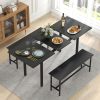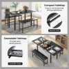 63” Extendable Kitchen Table Set with 2 Benches for Small Space