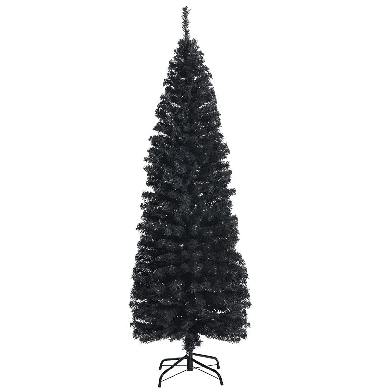 This is our brand new 6ft slim Christmas tree which is designed with 520 branch tips to offer a realistic and lush appearance. Simple Christmas tree allows you to decorate it freely with Christmas stockings, colored balls, lights or other ornaments according to your own preferences. Slim pencil shape design makes the tree take up less space to suitable for any narrow place. Foldable X-shaped iron stand prevents breakage and enhances the balance of the tree, offering stability to keep the wondrous tree standing all year around. Whether for your home, courtyard, or for commercial places like shops, the distinctive blue pencil tree is the perfect eye-catching decoration to add multiple fun and festive holiday fullness!