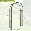 This powder-coated steel garden arch combines strength and versatility for outdoor use. The thick frame supports climbing plants, reinforced by galvanized ground stakes and widened base plates that stabilize the structure on uneven terrain. Reinforced crossbars securely hold hanging planters or decorative lights. PE coating protects against sun and rain exposure while allowing easy cleaning with a damp cloth. At 7.2 feet tall, the arch accommodates both plant growth and practical garden access. Use it to support vegetables like cucumbers or as a decorative base for outdoor events. Assembly requires no special tools - follow included instructions to connect pre-drilled components with provided hardware.
