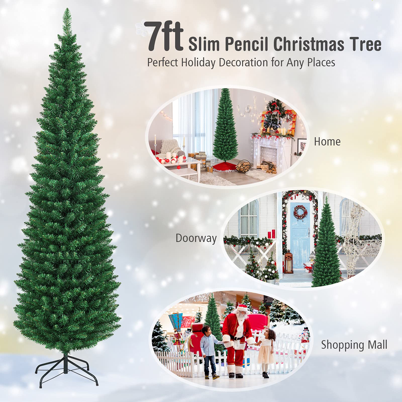 7FT Pencil Christmas Tree Slim Skinny Hinged Pine Tree with PVC Material