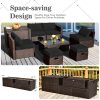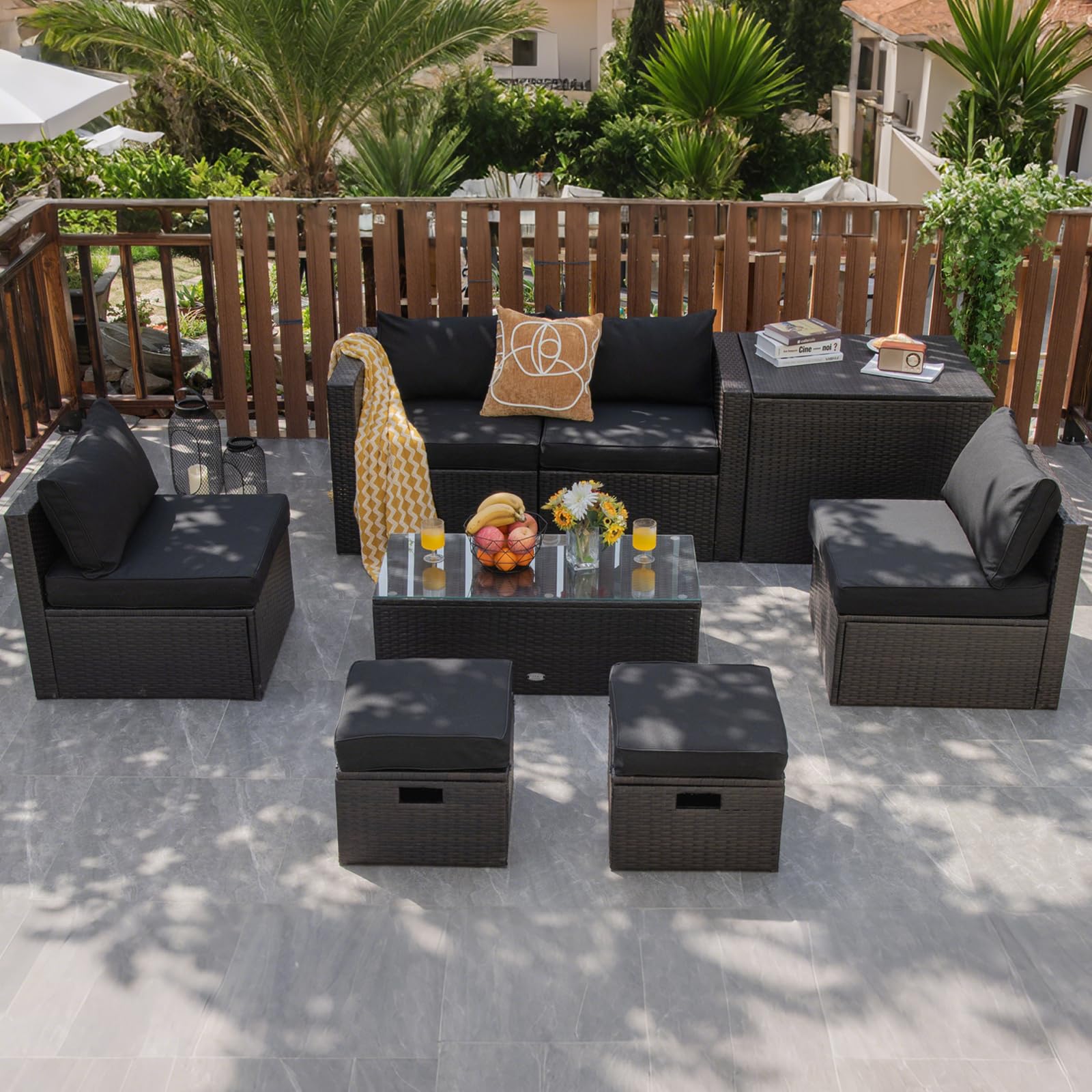 Material: PE Rattan, Steel, Tempered Glass, Polyester, Foam
