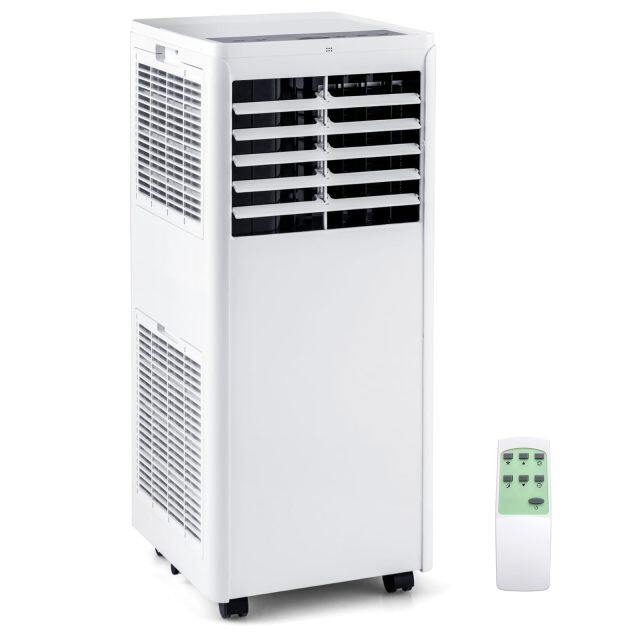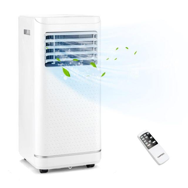 This portable air conditioner can bring you great coolness and comfort! This 8000 BTU portable air conditioner with adjustable wind direction and washable filters provides powerful, cool and clean air flow for your space. Designed with cooling, dehumidifying, fan and sleep mode, this AC unit can meet various needs for maximum comfort. The noise level is lower than 54 dB, creating a quiet environment for you to sleep, work, etc. Besides, there are 2 speeds to choose from: high/low. And you can preset a 1-24 hour timer to turn the portable AC on or off, which can save energy. The handy remote control and LED touch panel make it easy to operate. What's more, the removable filters and 2 drain holes ensure convenient cleaning & drainage.