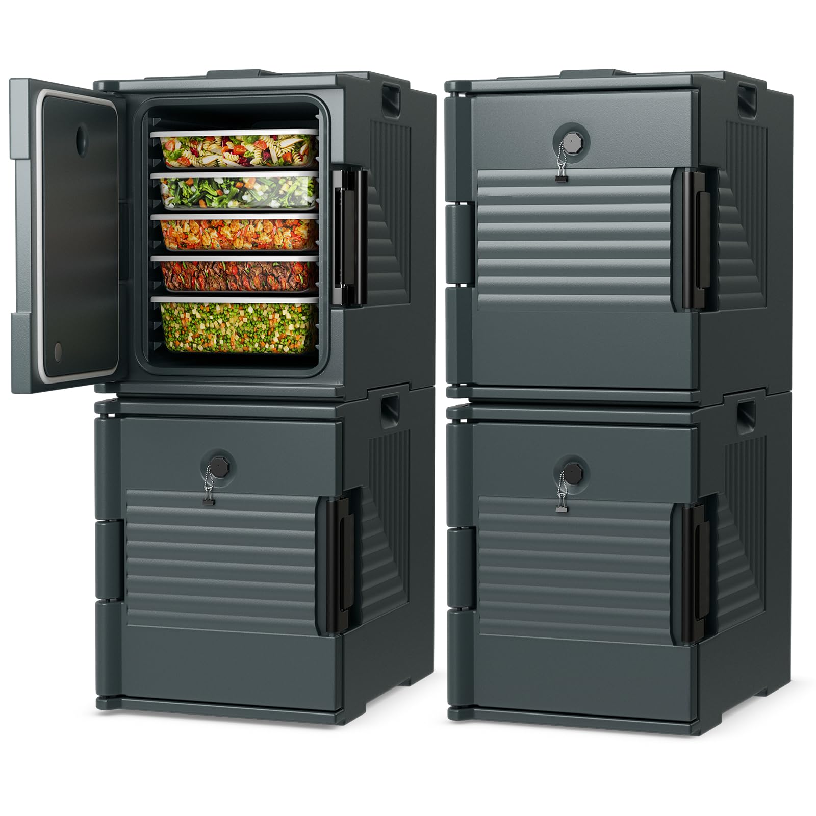 With a 3-layer insulation system, including an impact-resistant exterior, polyurethane layer, and food-grade interior, your dishes will stay at the perfect temperature. And 95-quart capacity makes this insulated food container hold a variety of pan sizes based on your different needs. Its convenient design includes embedded handles for easy transportation and a latch to secure the contents. Stackable for space-saving storage, this portable food warmer is perfect for outdoor banquets, camping, restaurants and hotels. Its user-friendly details such as a front menu clip and a 270Β° wide opening angle make it easy to access and identify your food.