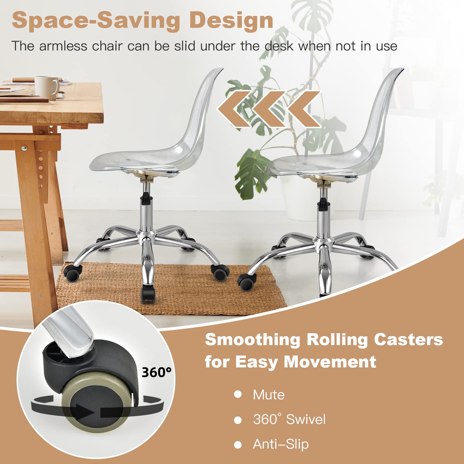 Acrylic Clear Desk Chair Armless Swivel Vanity Ghost Plastic Chair