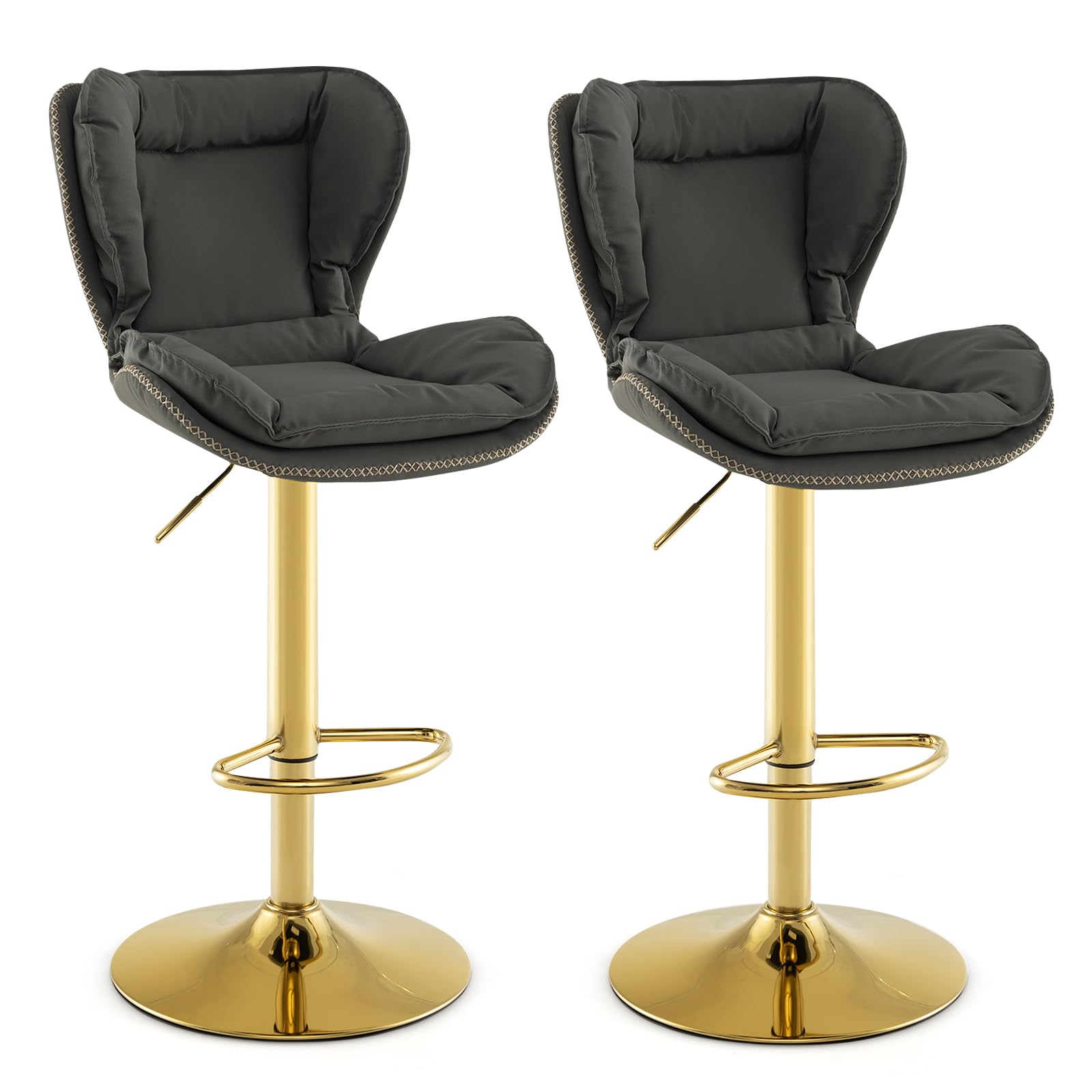 Supported by a double-layer electroplated metal base, it is sturdy, wear-resistant and each stool can hold up to 330 lbs. Plus, the anti-slip ring increases stability and protects the floor. The soft sponge filling allows you to sit in comfort, and smooth leathaire gives a good touch. Furthermore, the curved backrest and thoughtful footrest fit the spine to help you enjoy better relaxation. With adjustable height and 360° rotation, the modern bar stools set can perfectly meet various preferences.