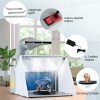 Enjoy clean air while doing a DIY project with our portable airbrush spray booth! Designed with a premium fiberglass filter, this lighted airbrush spray booth has an excellent air purification capacity. Additionally, the extended exhaust hose will help expel harmful substances from the air. The powerful fan works at a low noise level, avoiding bothering other people around you. In some dark space, the luminous LED lights will light up for a better view. Likewise, the 7.5”/19 cm turntable that rotates 360° will realize all-direction operation. When you do not need to use this airbrush spray booth, just fold it into a suitcase and stow it in a limited area. The lightweight of 7.7 lbs/3.5 kg enables you to take it to the desired place easily.