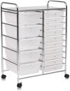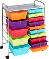 This individual 15-drawer trolley features 6plastic drawers with silver drawer handles and a sturdy caster with a sturdy, smooth metal frame.The shallow and deep drawers are made of solid, colored, transparent materials that make everything easy to see, while removable casters facilitate movement.You can keep our 15 drawer rolling trolley in the kitchen for recipes, gadgets, and napkins. Keep this organizer tools in your office for documents, mail, and other supplies.This portable storage cart can also be placed in a garage or workshop to store tools, screws and other hardware. It is also ideal for classrooms where art and crafts are stored in a simple place.You can even use it in retail Settings to sort inventory items or paperwork.15 rolling storage cart with multicolor scheme is sure to suit any decoration, it can satisfy your needs and serve you for a long time, and I can't think of any reason to refuse to own it!