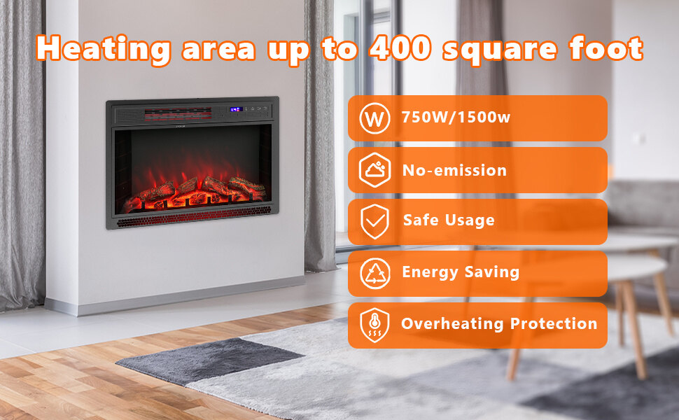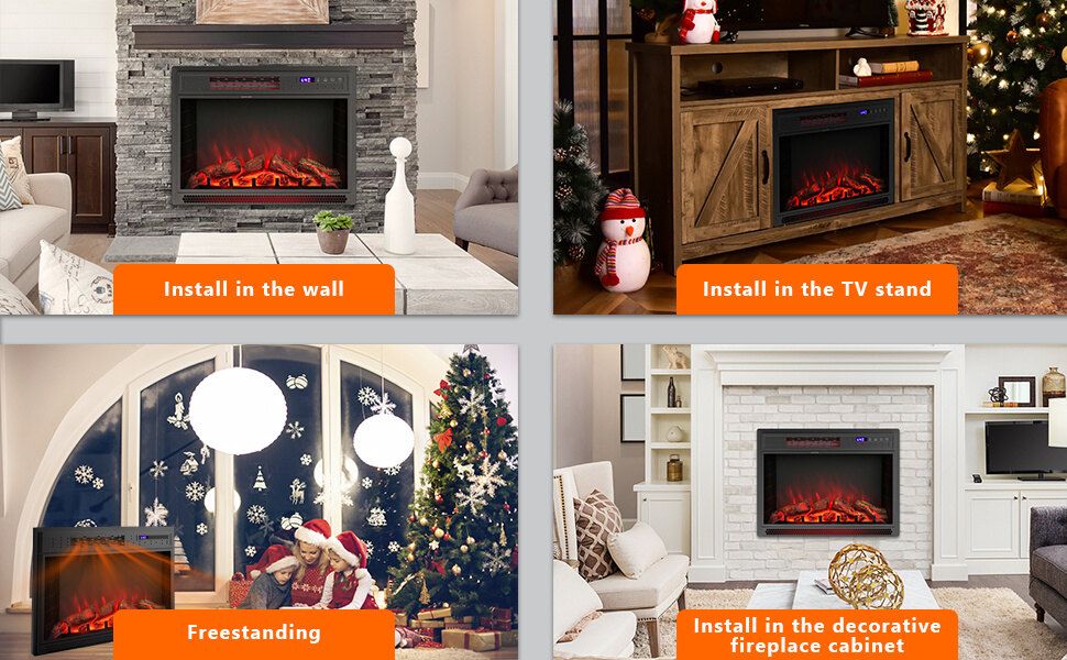 • 🎄Realistic Flame for All-year Home Decor: Realistic wood burning logs coordinate with gorgeous realistic dancing flames with or without heat- This traditional-looking electric fireplace insert can be fully recessed into an existing old fireplace opening or directly installed into a wall, a mantle, or just freestanding indoor use. The elegant decorative fireplace is Ideal for all kinds of occasions such as home, office, or anywhere heat and ambiance is needed. 29" x 9.5" x 20.5" (L x W x H)