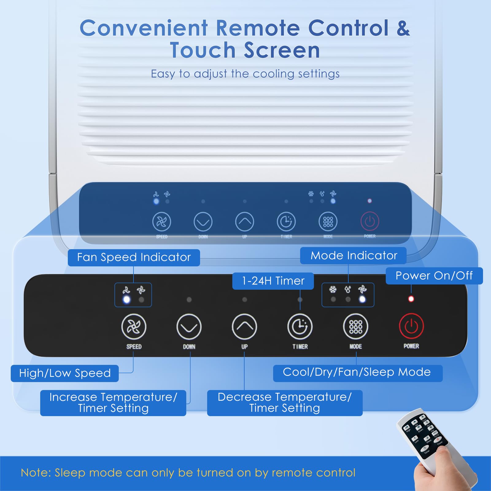 - [Easy to Use & Move]: The smart touch screen and LED display allow for easy settings adjustment, while the remote control (16 ft range) offers convenient operation from afar. Integrated handles and 4 castors enable effortless mobility wherever needed.