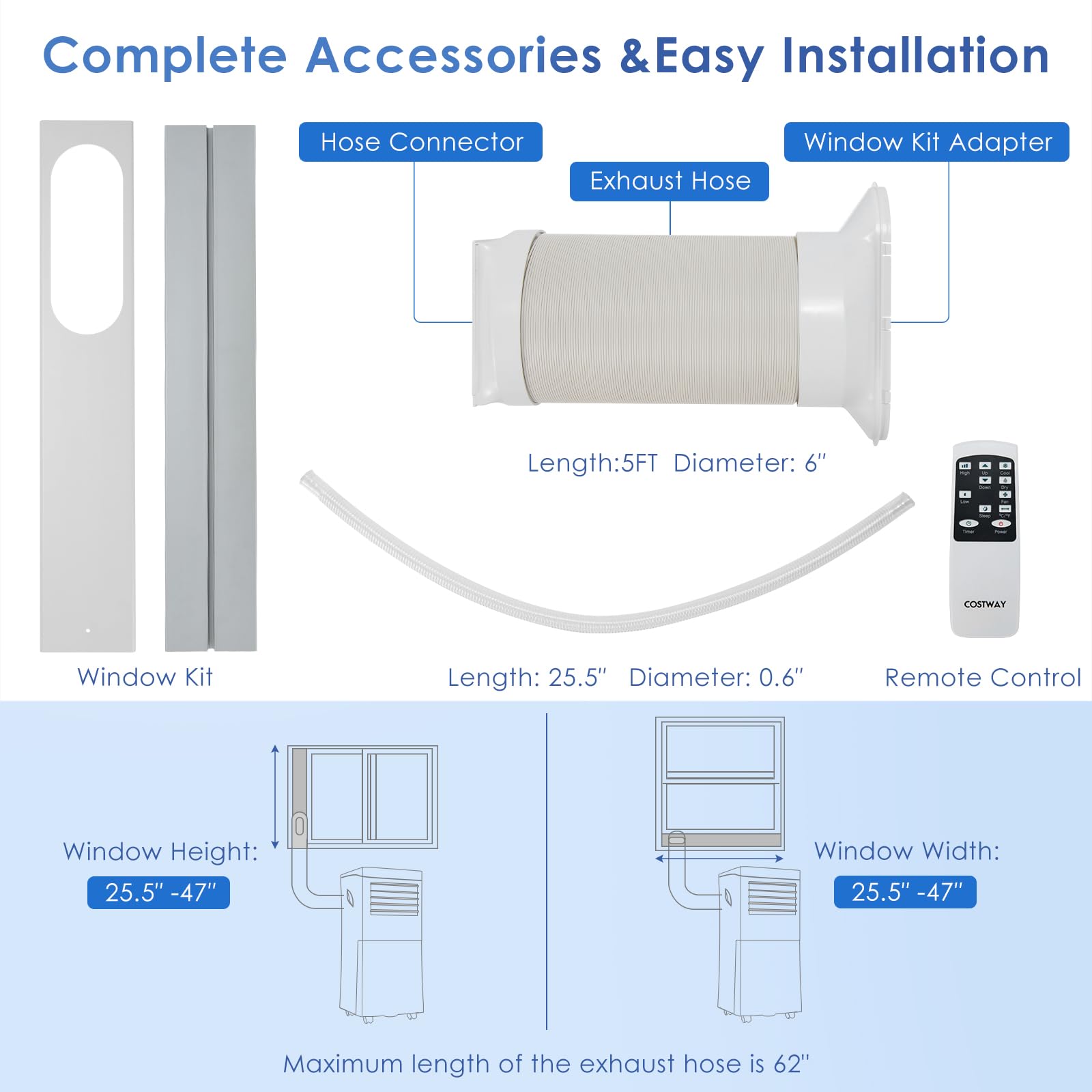 - [Flexible Installation for Use Anywhere]: The adjustable window kit and straightforward instructions make attaching the exhaust hose to vertical or horizontal sliding windows a breeze. Perfect for refreshing spaces like homes, offices, garages, and bedrooms.