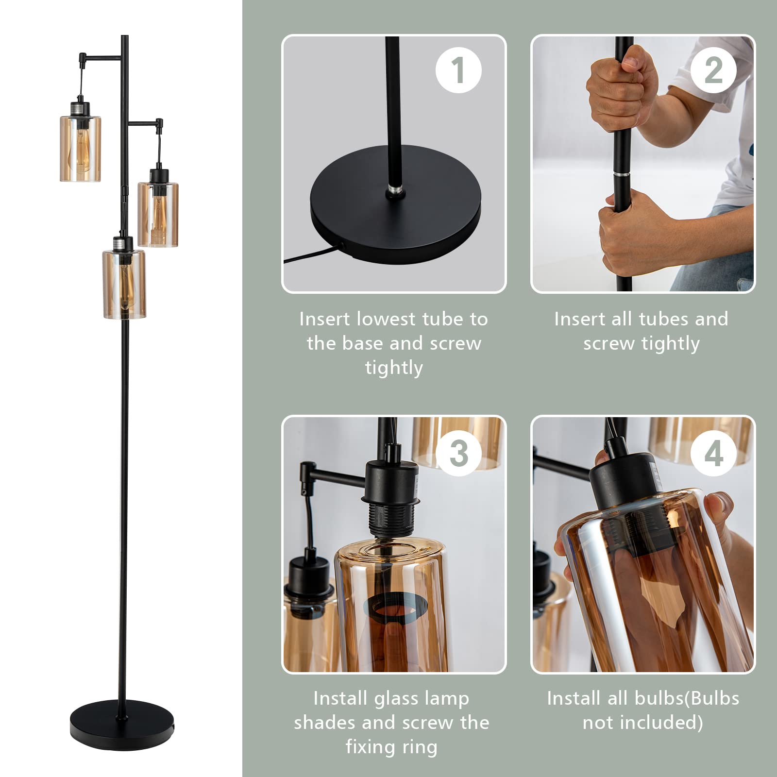 - Amber Glass Lampshade: Our freestanding floor lamp comes with 3 glass made lampshades, which is able to create a warm and cozy atmosphere for you. Besides, the lampshades made of strong amber glass material can perfectly protect the bulbs (not included) and prevent the direct light from hurting your eyes.