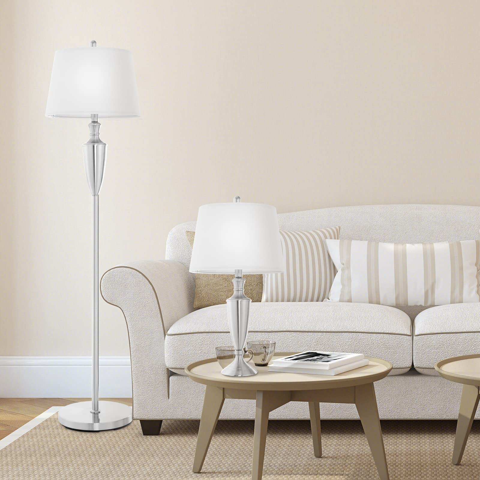- Functional & Eye-Catching Lamps: Including 2 table lamps and 1 floor lamp, this lamp set will brighten up every corner of your living space. Also, the elegant nickel finish makes the three lamps more eye-catching and perfectly decorates the surroundings. The three lamps can be used separately according to your demands.