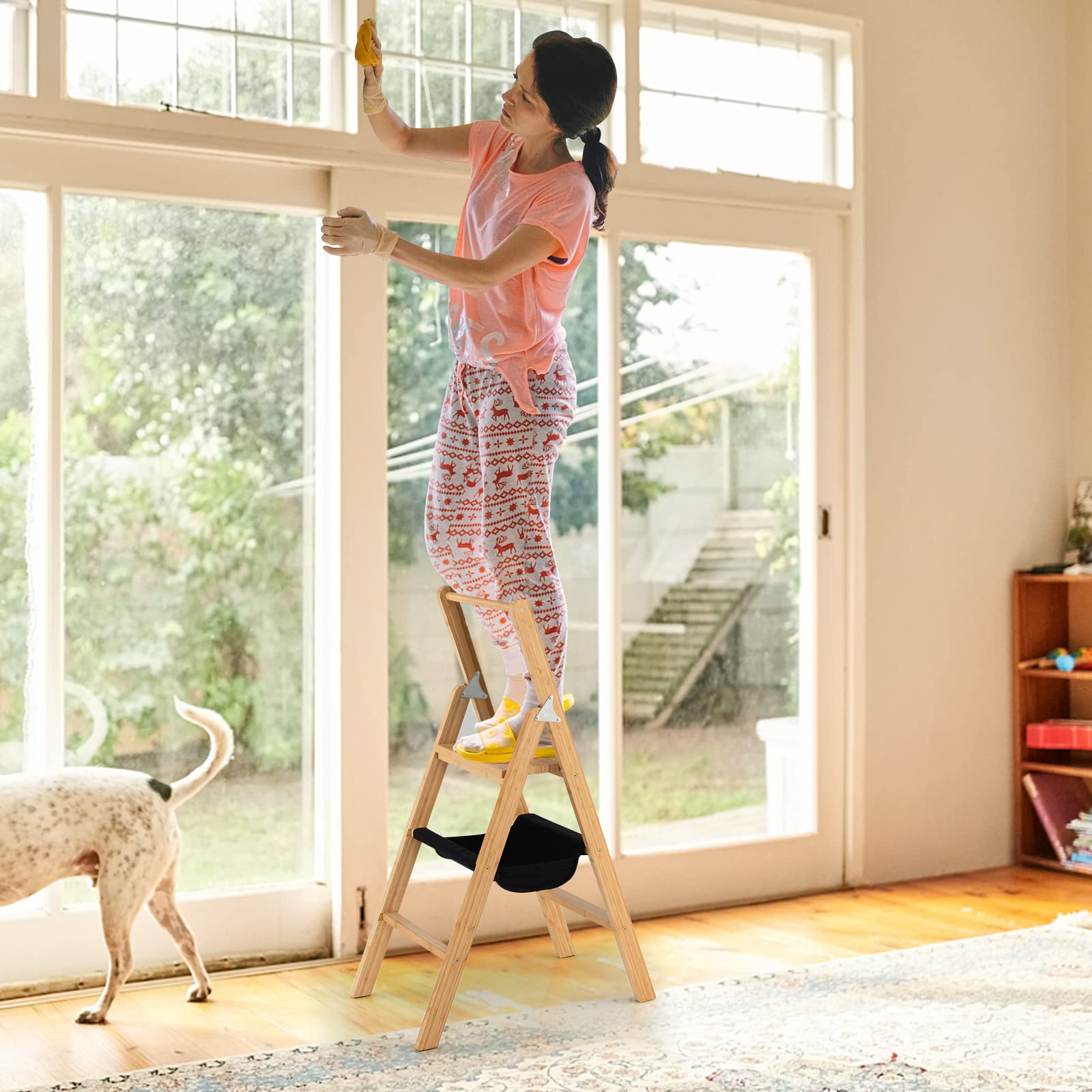 ARLIME 3 Step Bamboo Ladder Folding Step Stool with Storage Bag