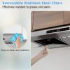- [3 Operation Ways]: There are 3 control methods for you to easily operate the kitchen hood, including gesture control, smart touch control, and remote control. The gesture control indicates that you can wave to the left to decrease the fan speed and wave to the right to increase the fan speed without staining the range hood.
