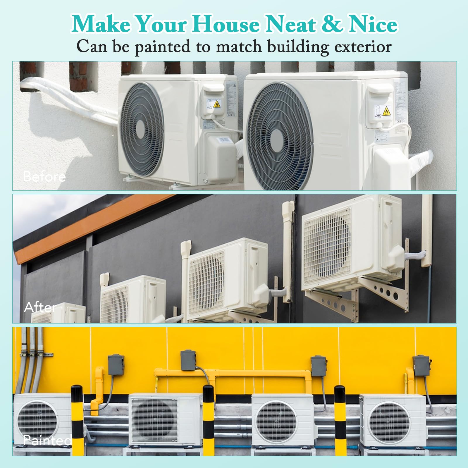 - Sleek & Customizable Appearance: This decorative line set cover kit can not only protect your air conditioner pipes & cords, but also visually hide them to make your house neat & nice. In addition, it can be painted to match your building facade or wall seamlessly.